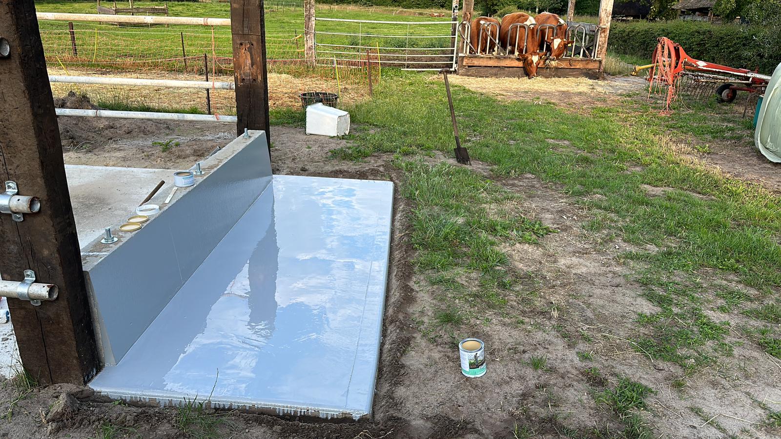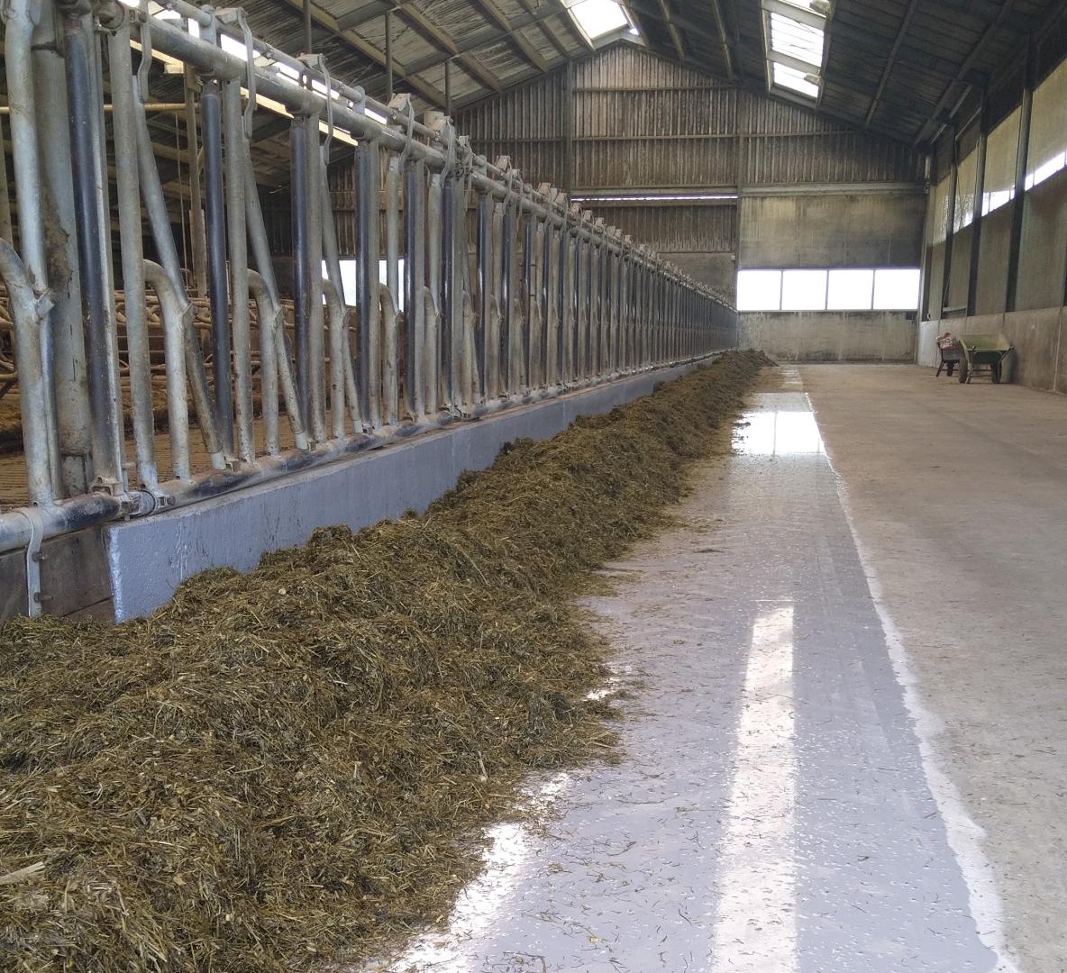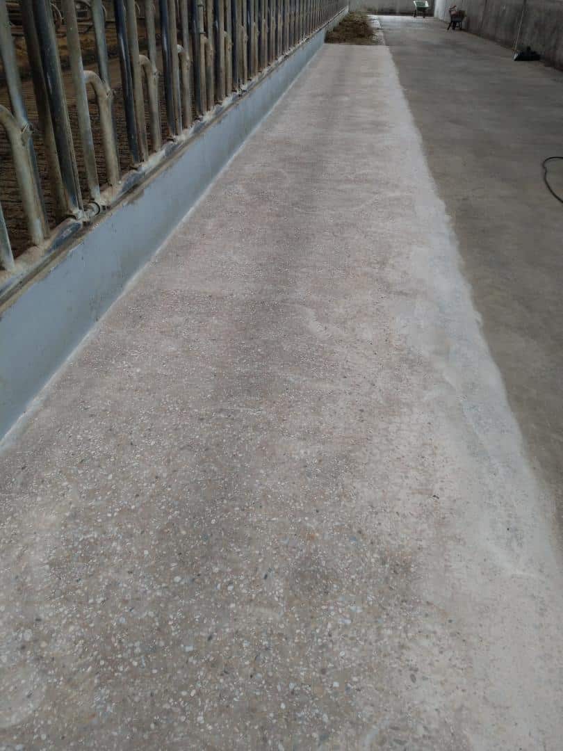 In Britswert werd afgelopen zomer deze oude voergang hersteld. De boer sleep eerst de oneffenheden van het beton glad met een betonslijpmachine. Vervolgens werd deze gecoat met 1 laag Farmcoat Epoxy Vloercoating.