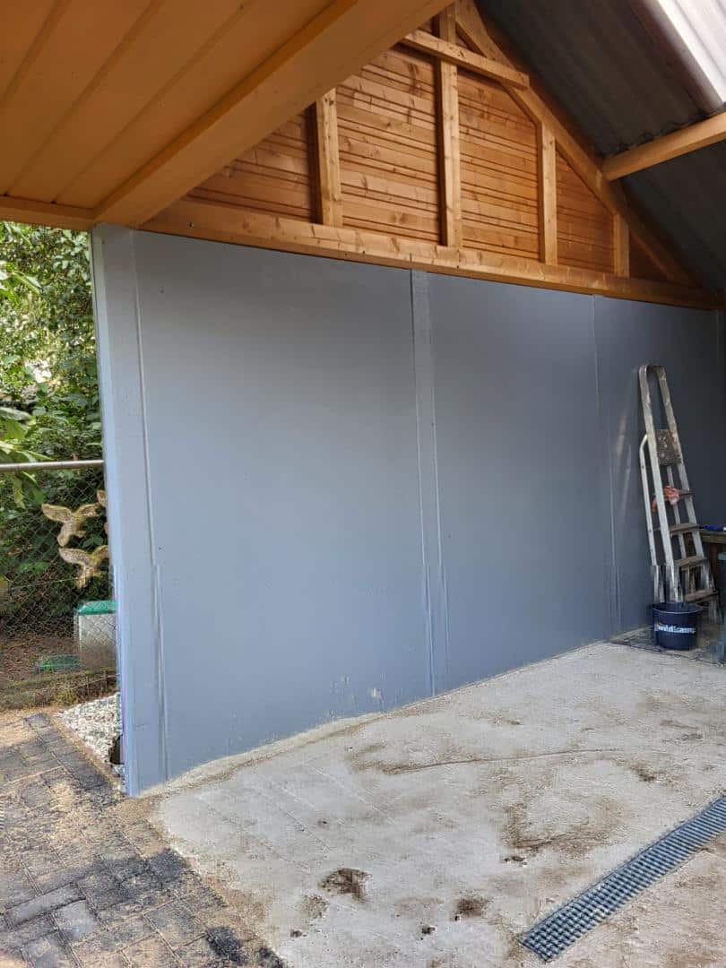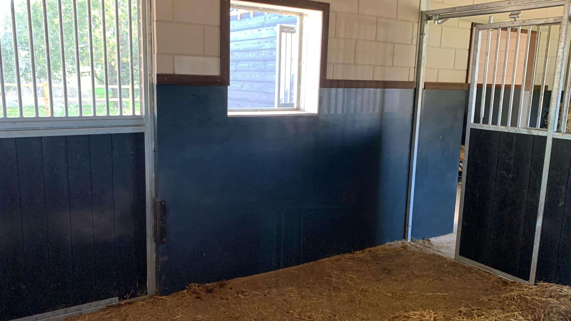 In deze paardenstal werd Farmcoat Wandcoating in RAL 7001 aangebracht door de eigenaar. Na het aanbrengen ontstaat een naadloos oppervlak dat zeer goed schoon te houden is.